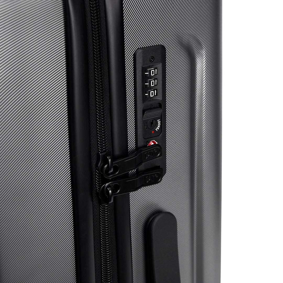 Maleta de 28" con capacidad de 87 L, fabricada en ABS+PC, con medidas de 51.5 x 77 x 31 cm y peso de 4.6 kg. Dispone de cierre con combinación TSA®, cremalleras dobles de seguridad, asas laterales y superiores para fácil transporte, además de un amplio compartimento principal ideal para guardar un juego completo de ropa.