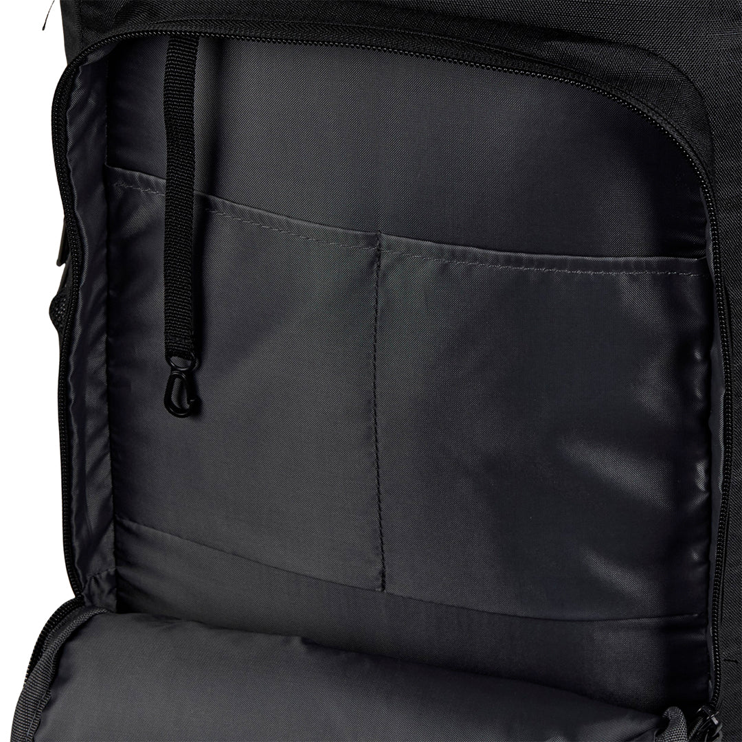 Mochila de 25.5 L fabricada en poliéster reciclado 450D Ripstop, con medidas de 31 x 46.5 x 16.5 cm y peso de 0.485 kg. Dispone de compartimento principal con bolsillo forrado, bolsillo frontal con organizador y llavero, bolsillos laterales de malla, detalles de cordones y logo reflectante para mayor funcionalidad y estilo.