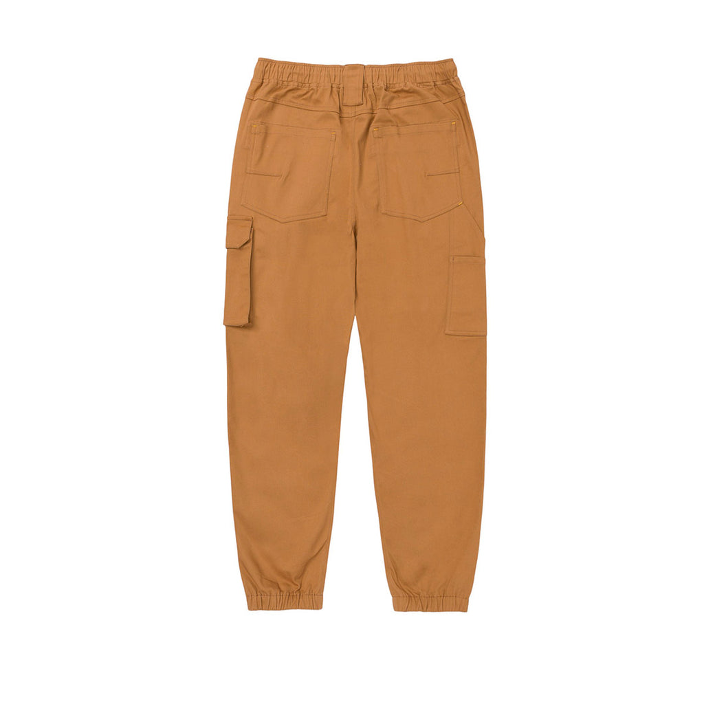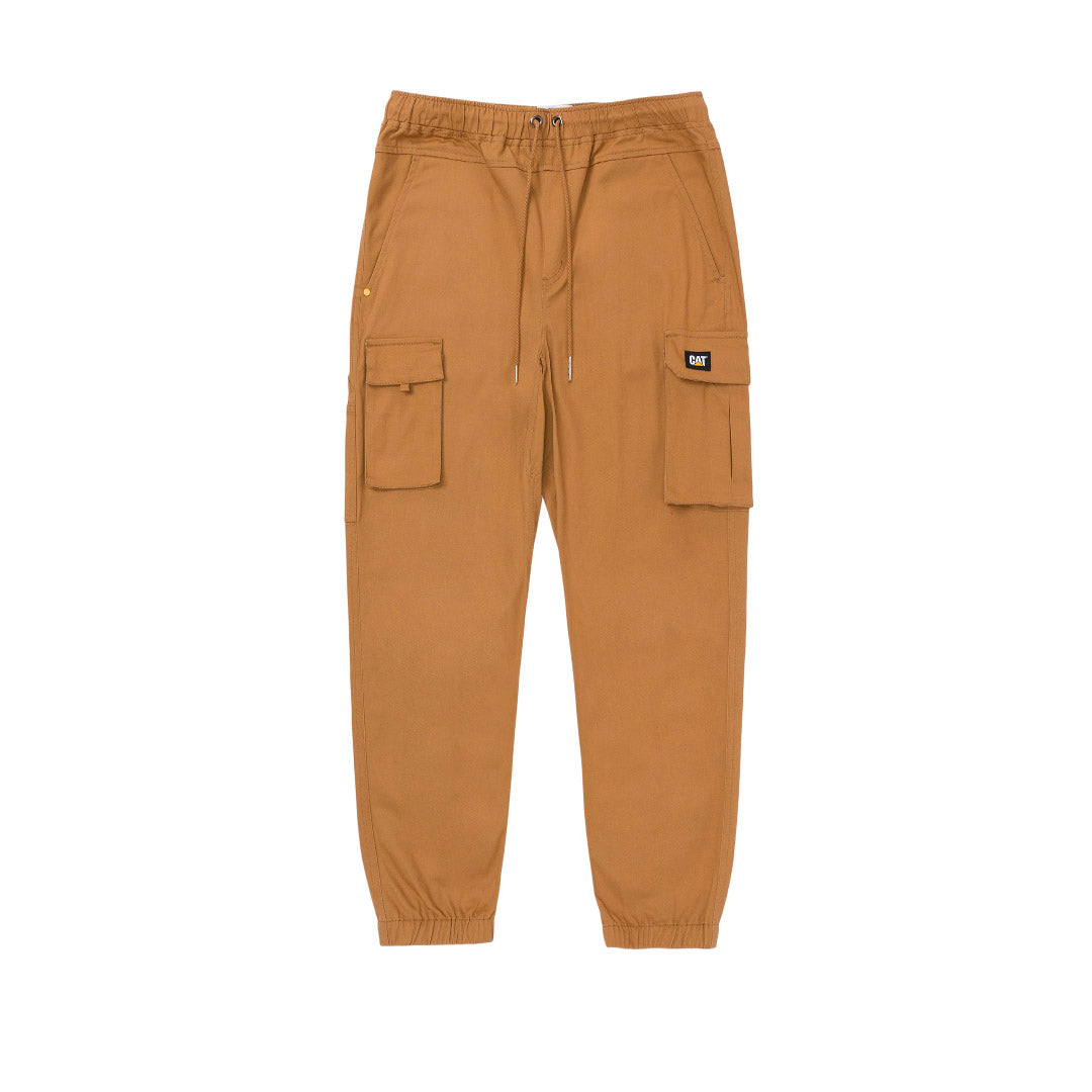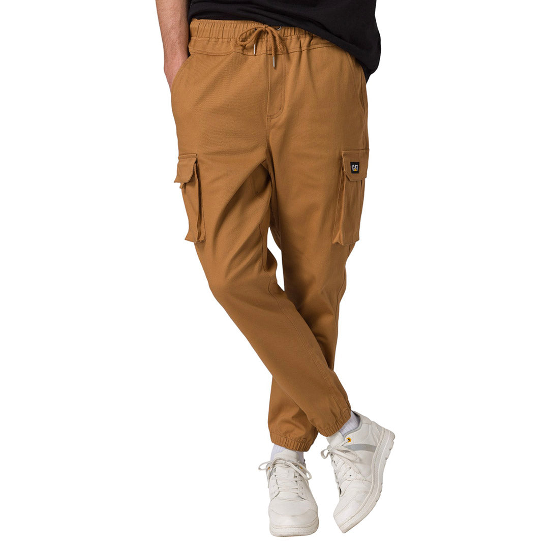 Pantalón chino para hombre, bragueta con cremallera y cierre de botón, bolsillos cargo, cintura elástica, puños elásticos, material con spandex con logotipo tejido con marca de diseño CAT, 97% algodón, 3% spandex, 270GSM.