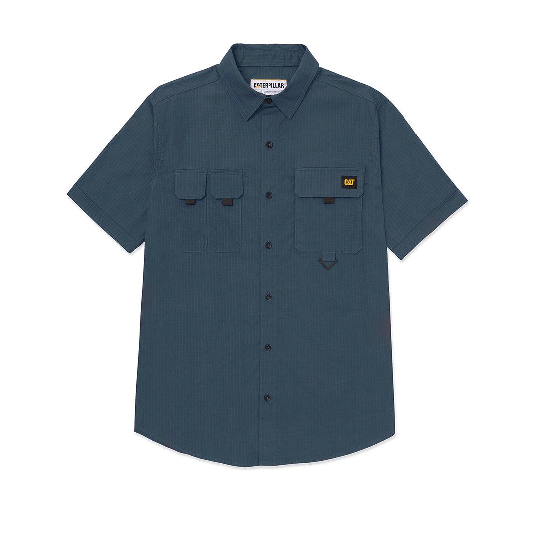 Esta cómoda y práctica camisa de manga corta cuenta con múltiples bolsillos, un logo de la marca CAT en el pecho y un detalle de anillo en forma de D. Su diseño durable lo hace ideal para el uso diario. ¡Luce moderno y organizado con esta camisa funcional!