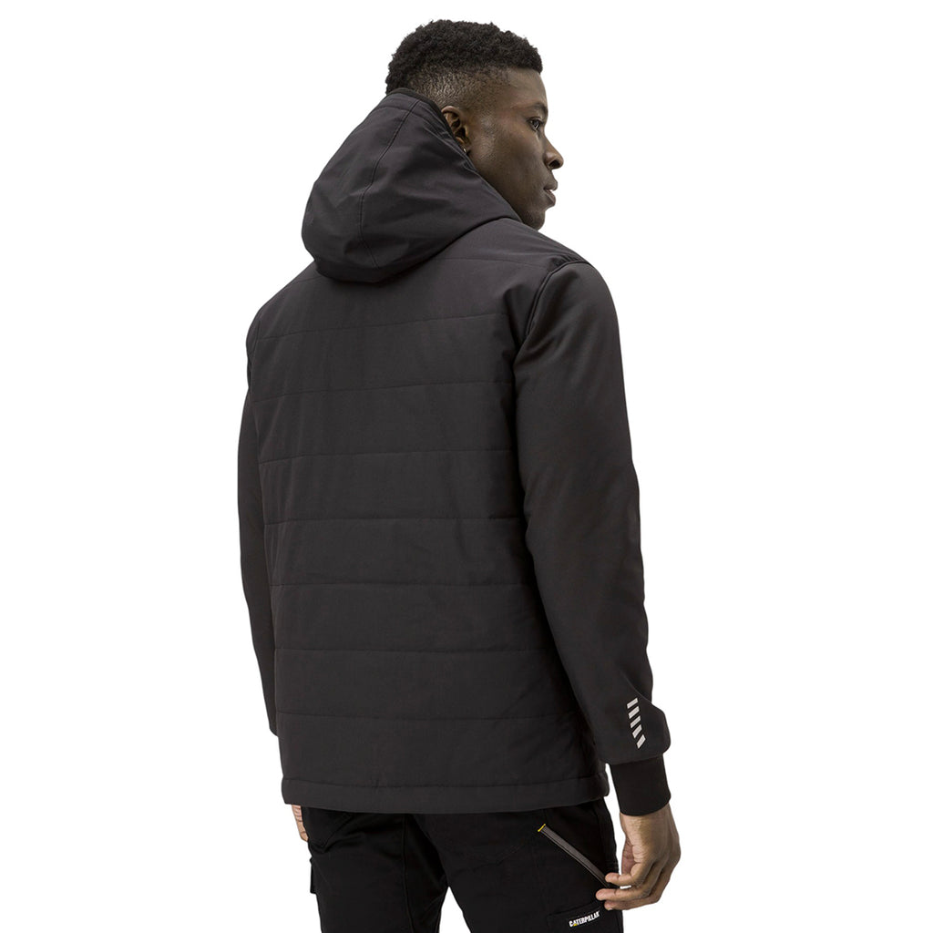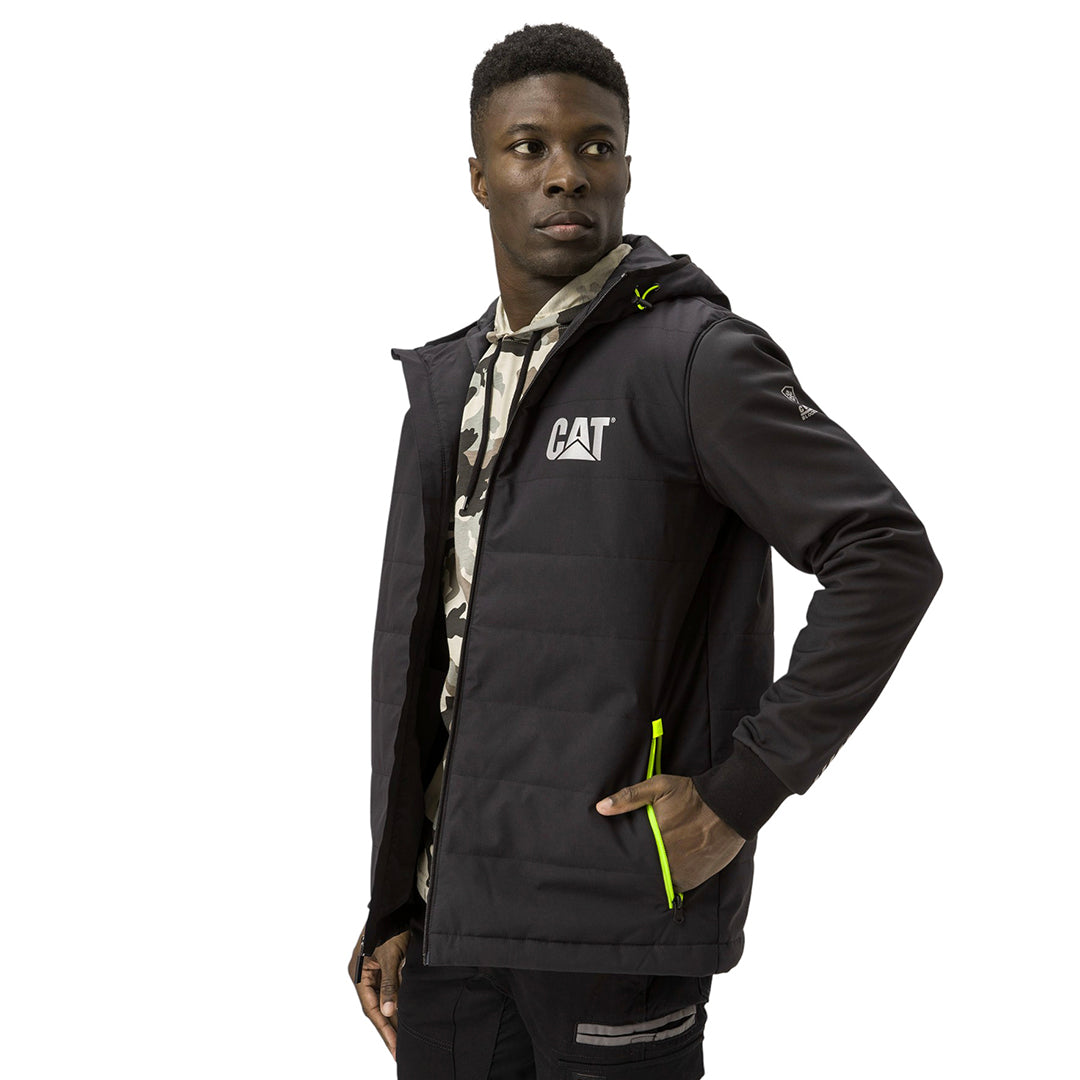 Chaqueta Tech Hybrid diseñada con combinación de softshell y ripstop para máxima resistencia y confort. Cuenta con cierre frontal completo, solapa interna contra viento, capucha ajustable y dobladillo regulable. Ofrece impermeabilidad de 5000 mm y transpirabilidad avanzada. Incluye bolsillos calientamanos con cierre en contraste, bolsillo interno seguro y detalles de marca: logo reflectivo en el pecho, gráficos reflectivos en puños y el ícono Cold Blocker.