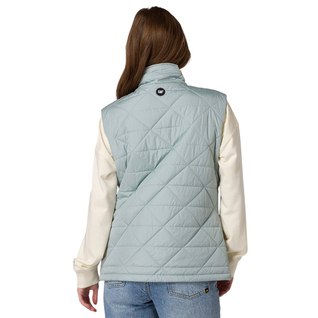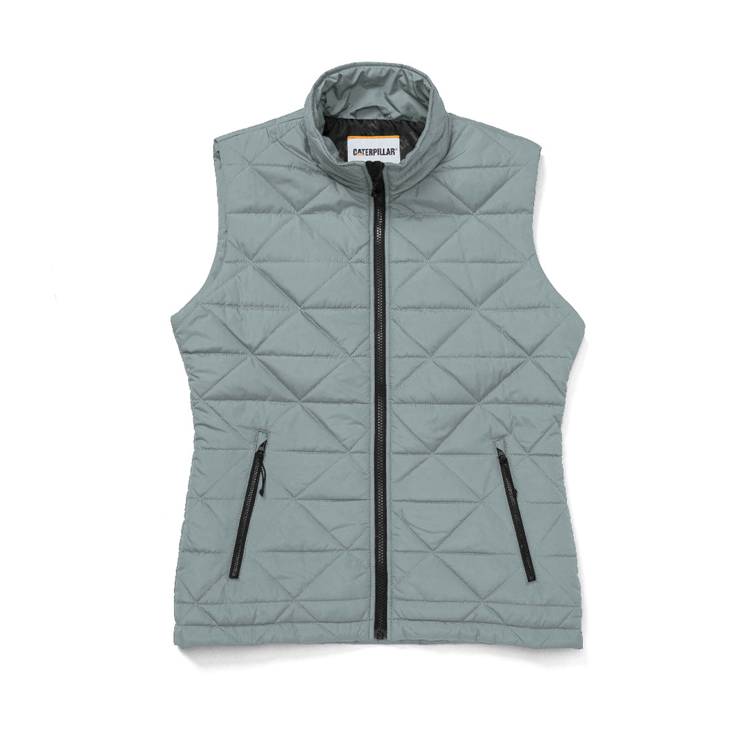 Chaleco acolchado que combina calidez funcional con un toque moderno, con aislamiento de peso medio, bajo ajustable, cremallera central con solapa, bolsillos con cierre y forro con logo Caterpillar®, con parche de silicón Cat® en la nuca.