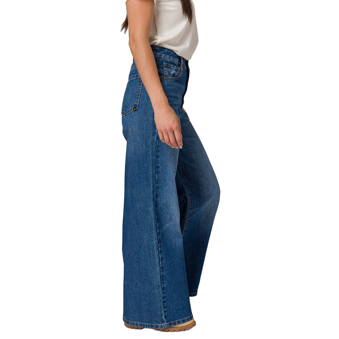 Jeans flare Wide para mujer color indigo